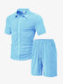 Men's Casual Button Solid Color Towel Figured Cloth Short Sleeve Suit